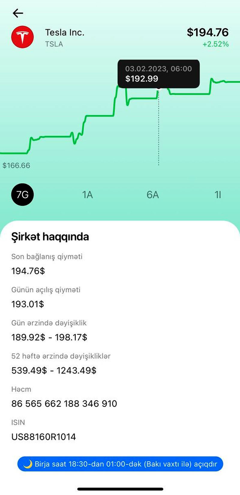 “Leobank” mobil tətbiqinin istifadəçiləri “İnvestisiyalar” bölməsi vasitəsilə qlobal maliyyə bazarlarına çıxaraq, xarici şirkətlərin səhmdarı olmaq imkanını əldə ediblər.