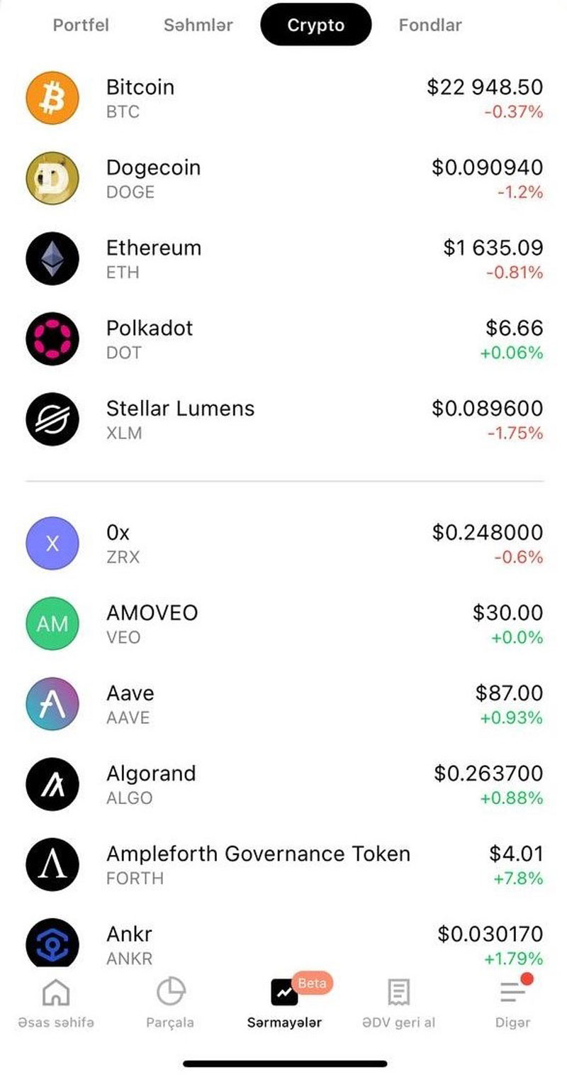 Mobil tətbiq istifadəçiləri investisiya bölməsinin aşağıdakı imkanlarından yararlana biləcək: