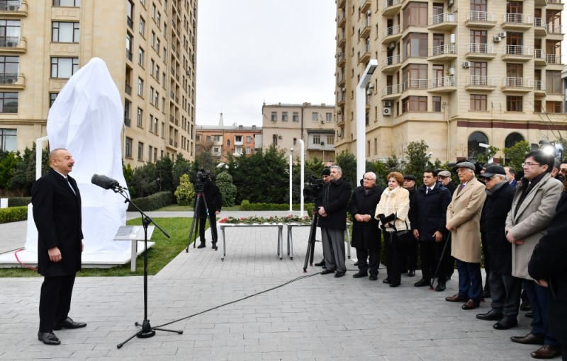 - Sabahınız xeyir olsun. Bu gün biz görkəmli bəstəkar Tofiq Quliyevin abidəsinin açılışına toplaşmışıq. Şəhərimizin mərkəzində ucaldılan bu abidə Azərbaycan xalqının dahi bəstəkar Tofiq Quliyevin xatirəsinə olan hörmətinin əlamətidir. Həqiqətən Tofiq Quliyevin əsərləri Azərbaycan mədəniyyət aləmində bir inqilab etmişdir. Tofiq Quliyev həm görkəmli bəstəkar, həm Azərbaycanda caz sənətinin banisi də adlandırıla bilər. Eyni zamanda, böyük mədəniyyət xadimi Tofiq Quliyev Azərbaycan xalqının sevgisini qazanmışdır.