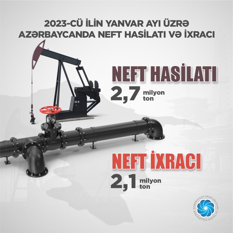 "Operativ məlumatlara görə, bu ilin yanvar ayında hasil edilmiş 2.7 milyon ton neftin 2.1 milyon tonu ixrac edilib".