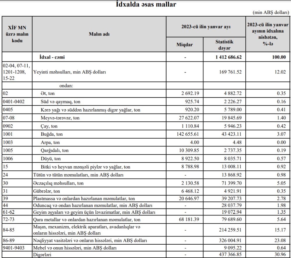 2023-cü ilin yanvar ayında Azərbaycanın ən çox ixrac və idxal etdiyi mallar.