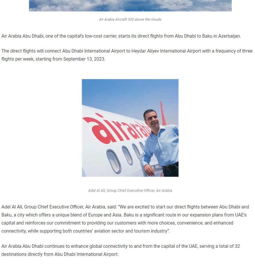 “Air Arabia”nın baş direktoru Adel Əl Əli deyib: