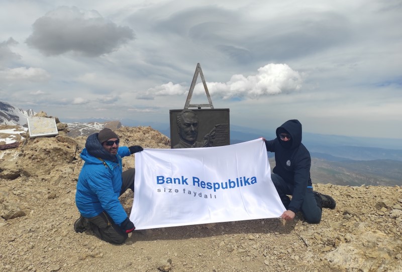 (®) Ümummilli Lider Heydər Əliyevin anadan olmasının 100-cü ildönümü münasibətilə “Bank Respublika”nın əməkdaşları Ulu Öndərin adını daşıyan, dəniz səviyyəsindən 3751 metr hündürlükdə yerləşən “Heydər zirvəsi”nə yürüş ediblər.