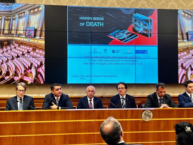 (®) 14 iyun tarixində PAŞA Həyat, İRS nəşriyyat evi və Azərbaycanın İtaliyadakı səfirliyinin birgə təşkilatçılığı ilə İtaliya Senatında “Azərbaycanda mina problemi: Beynəlxalq humanitar hüquq məsələsi” mövzusunda konfrans keçirilib.