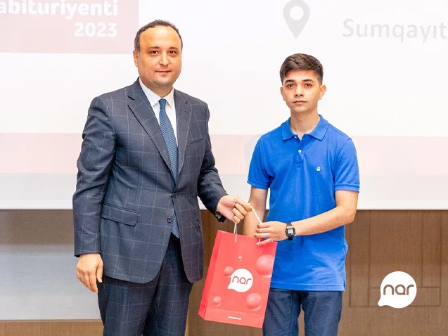 “Nar” 2022-2023-cü tədris ilində ali məktəblərə qəbul imtahanları zamanı ən yüksək bal toplayan ilk on abituriyenti dəyərli hədiyyələrlə mükafatlandırıb. Layihə çərçivəsində hər bir tələbəyə “Nar”-dan qızıl nömrə, 700 AZN balans və müasir smartfonlar hədiyyə edilib.