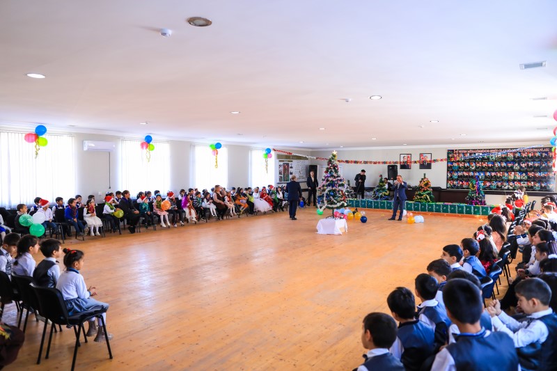 Keçirilən tədbirdə 150-dən çox ibtidai sinif şagirdi, müəllim kollektivi iştirak etmişdir. Uşaqlara bayram sevinci yaşatmaq üçün Şaxta Baba və animatorların iştirakı ilə bir sıra əyləncələr təşkil edilib. Tədbirə xüsusi hazırlaşan şagirdlər tamaşalar nümayiş etdirmiş, şeirlər və nəğmələr oxumuşdur. Daha sonra Şaxta Baba uşaqları qarşıdan gələn yeni il və Dünya Azərbaycanlılarının Həmrəylik günü münasibəti ilə təbrik edib bayram hədiyyələri təqdim etmişdir.