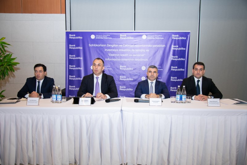 Səfər çərçivəsində Zəngilan Konqres Mərkəzində sahibkarlar üçün “Zəngilan və Cəbrayıl rayonlarında yaradılan investisiya imkankları” mövzusunda tədbir keçirilib. Tədbirdə Sahibkarlığın İnkişafı Fondunun İdarə Heyətinin sədri Osman Xaliyev, “Bank Respublika”nın İdarə Heyətinin sədri Tariyel İsmayılov və digər şəxslər çıxış edərək sahibkarlar və investorlar üçün yaradılan yeni imkanlardan, eləcə də işğaldan azad edilmiş ərazilərdə investisiya layihəsi həyata keçirmək istəyən sahibkarlıq subyektlərinə tətbiq olunan güzəştlər barədə ətraflı məlumat veriblər.