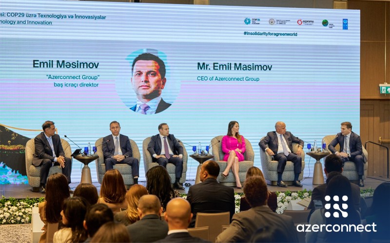 Azerconnect Group-un Baş direktoru Emil Məsimov COP29 çərçivəsində keçirilən Biznes Forumda dayanıqlı innovasiya mövzusunda panel müzakirəsində iştirak edib. O, iqlim dəyişikliyi fonunda yeni texnologiyalar yolu ilə dayanıqlı gələcəyin qurulması mövzusunda çıxış edərək Azerconnect Group-un enerjiyə qənaət, bərpa olunan enerji mənbələrindən istifadə, zərərli tullantıların təkrar emalı və yaşıl biznes modeli istiqamətlərində şirkətin uğurlu təcrübəsini və əldə etdiyi nəticələri paylaşıb.