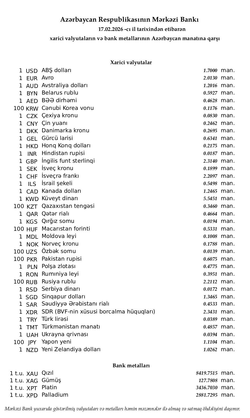 17.02.2026 tarixindən etibarən