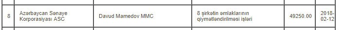 “Davud Mamedov” MMC “Azərbaycan Sənaye Korporasiyası” ASC-nin (ASK) balansına verilən bir sıra müəssisələrin əmlakının qiymətləndirilməsini həyata keçirəcək.