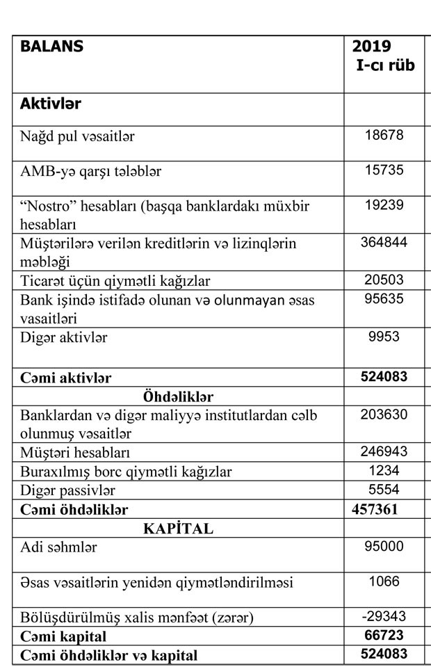 “Muğanbank” ASC 2019-cu ilin 1-ci rübü üzrə maliyyə göstəricilərini açıqlayıb.